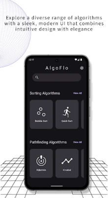 AlgoFlo is an educational app designed to help users understand algorithms through visualization. This app features interactive visualizations for popular algorithms such as sorting, searching, and pathfinding. The goal is to provide clear, easy-to-understand, and beautiful visualizations that can help users learn the mechanics behind each algorithm.