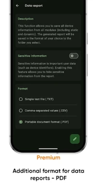 • Share your device information using \"Data export\";