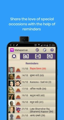 Users will know birthdays and marriage anniversaries of other family members. They will be able to call or send whatsApp messages on the occasions. Users will pay respect on birth and death anniversaries. Early morning reminder alerts will update them on upcoming family events and announcements.